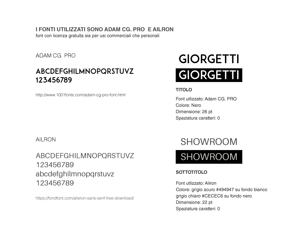 La linea grafica adottata è minimale. In maniera da evidenziarne il nome Giorgetti. Così che l’utilizzo del pantone grigio distaccato dal pantone bianco di show – room.